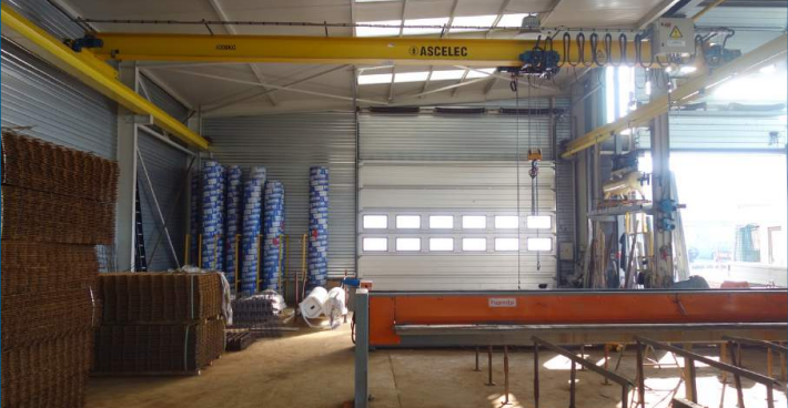La première entité, implantée sur un terrain de 2.848 m², développe deux halls contigus construits dans les années 1980 et 2000. Le hall principal (±460 m² + mezzanine ±151 m²) bénéficie d’une hauteur utile d’environ 8,5 m et d’un pont roulant de 5 tonnes. Le second hall (±290 m²), ouvert sur le premier, offre une hauteur utile de ±6,6 m et un pont roulant de 4 tonnes. Structures métalliques, bardages isolés, dalles lissées et accès via portes sectionnelles grand format complètent l’ensemble. Les abords sont bitumés (±1.400 m²) et le site dispose d’une cabine haute tension ainsi que de deux accès carrossables.